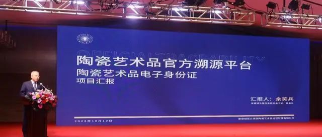 大會(huì)上,景德鎮(zhèn)市國(guó)控集團(tuán)黨委書(shū)記、董事長(zhǎng)余笑兵全面介紹了陶瓷藝術(shù)品官方溯源平臺(tái)電子身份證項(xiàng)目,從藝術(shù)家、消費(fèi)者和收藏家不同視角詳細(xì)闡述了平臺(tái)的作用與意義,演示了平臺(tái)重要功能。