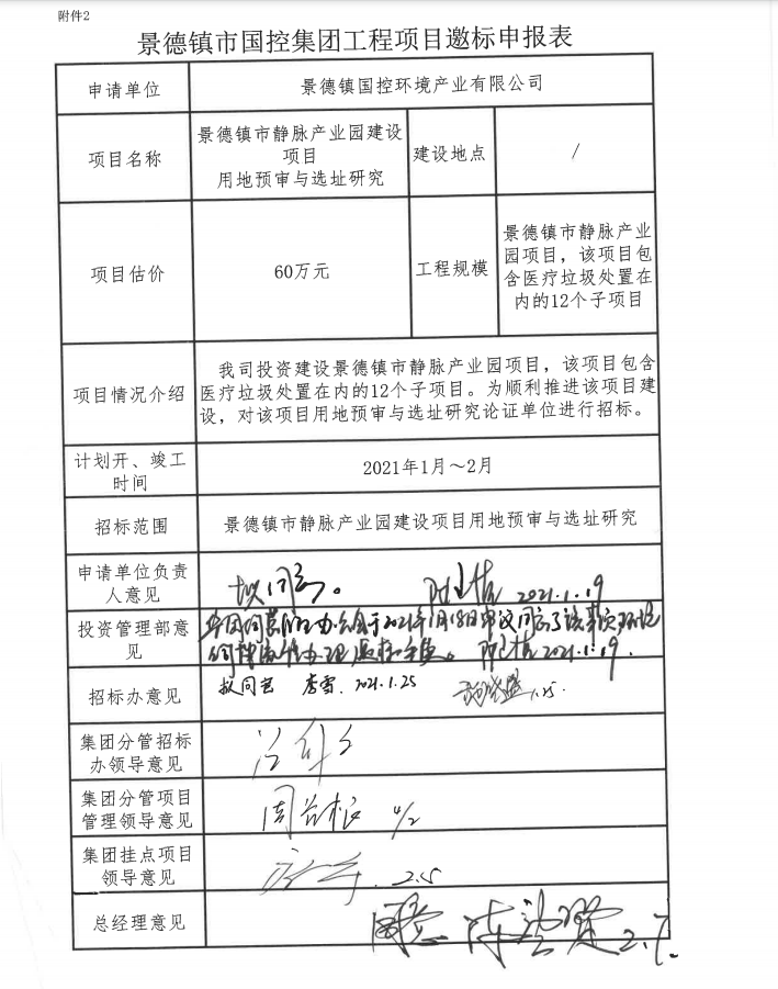 景德鎮(zhèn)市靜脈產(chǎn)業(yè)園建設(shè)項(xiàng)目用地預(yù)審與選址研究,由景德鎮(zhèn)國控環(huán)境產(chǎn)業(yè)有限公司作為邀標(biāo)人,擬通過邀標(biāo)方式確定中標(biāo)人,誠邀符合資格條件的潛在投標(biāo)人參與本項(xiàng)目的邀標(biāo),現(xiàn)將有關(guān)事宜公告如下: